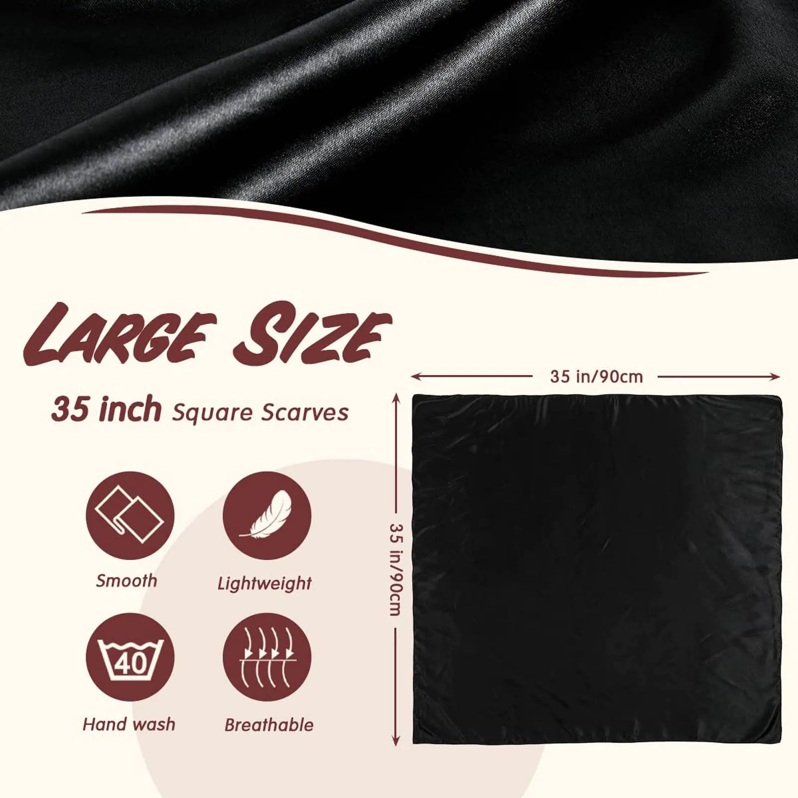 Chic Women’s Satin Square Head Scarf – Luxurious 35” Silk-Like Hair Wrap & Fashion Accessory